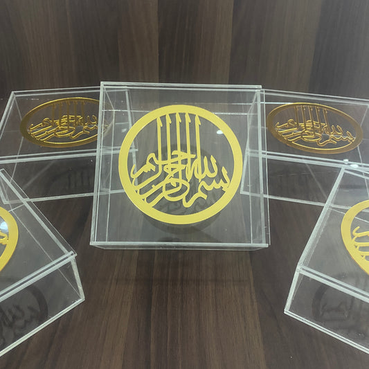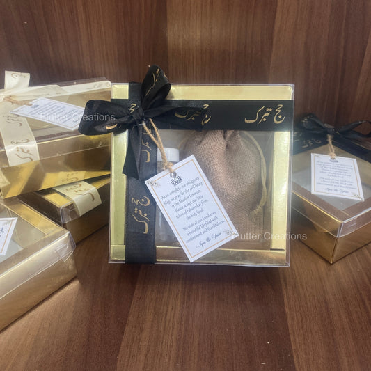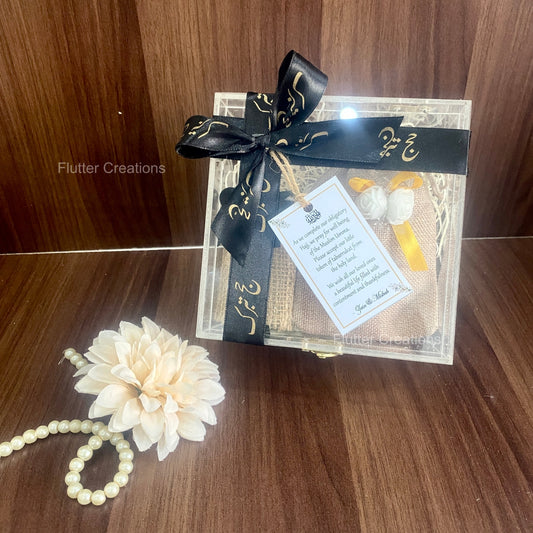 Hajj Tabaruk Acrylic Box with Printed Ribbon & Tag