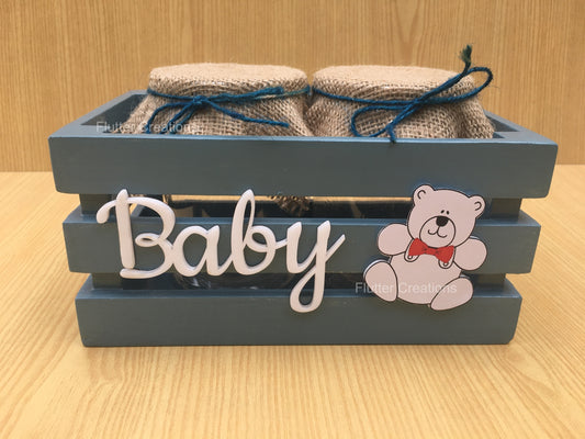 Wooden Crate/Basket with Baby Cutout & Teddy Bear