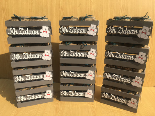 Wooden Crate/Basket with Kh.Zidaan Cutout & Teddy Bear