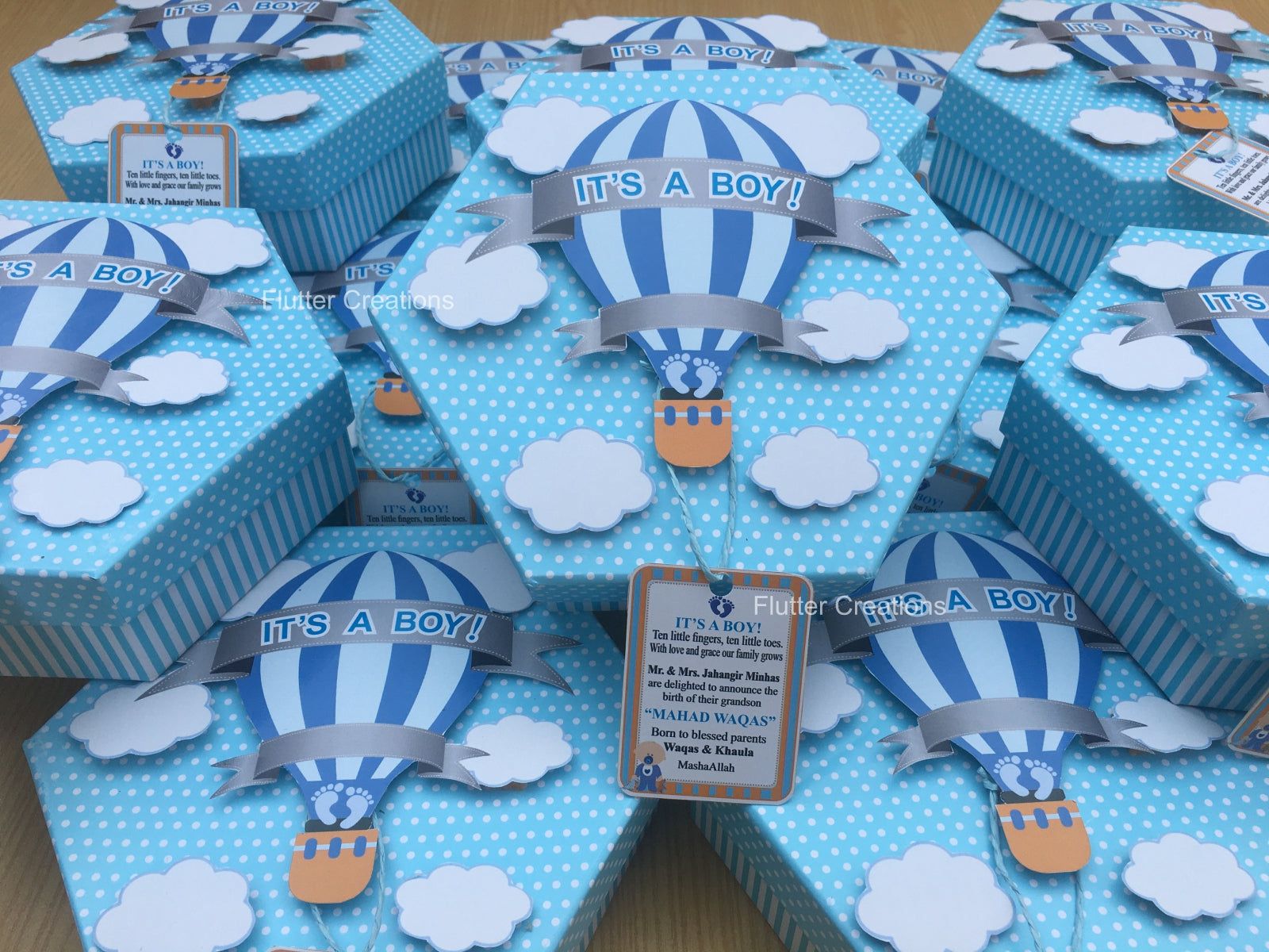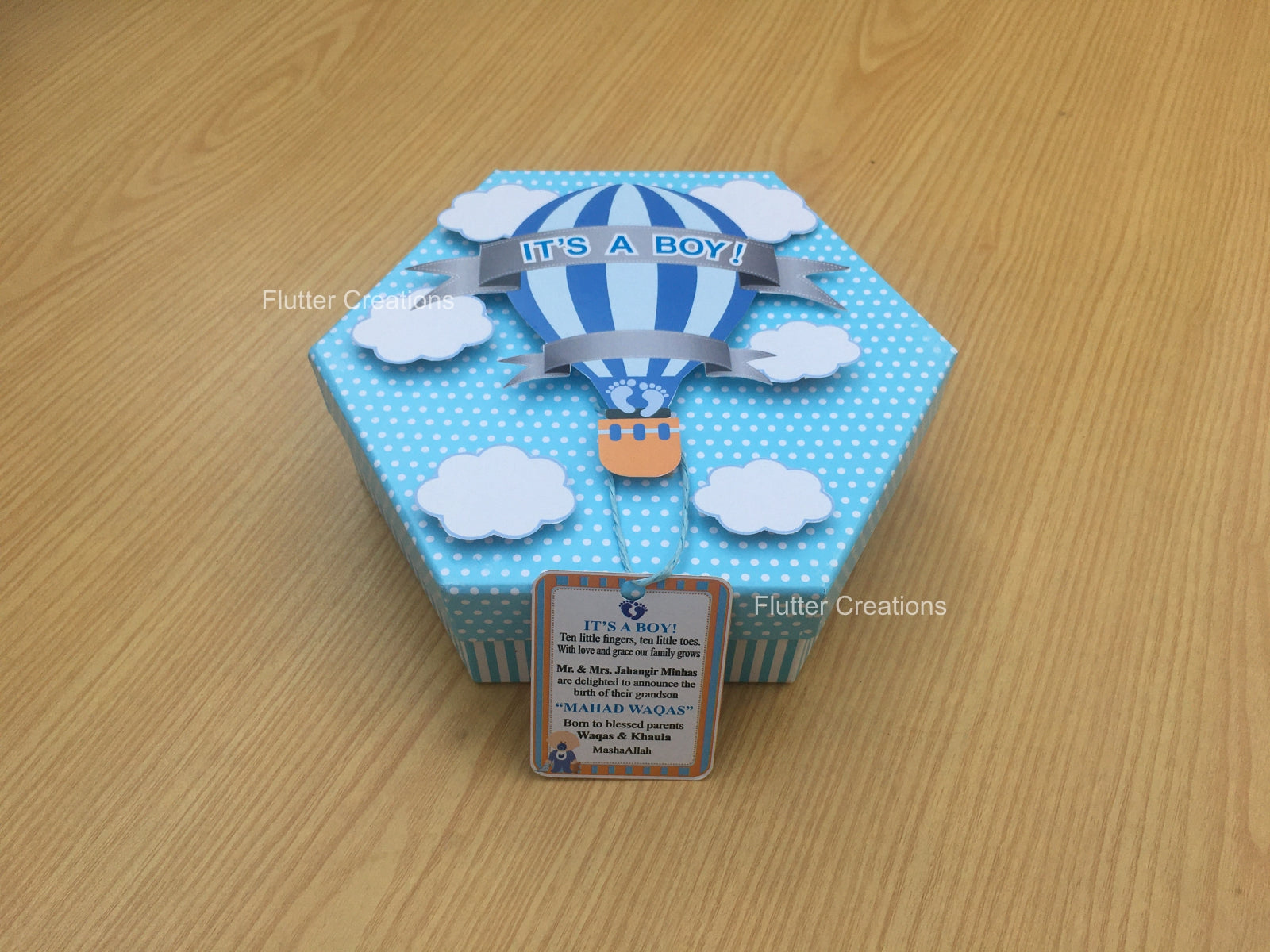 Baby Boy Announcement Box - Hexa Shape Hot Air Design