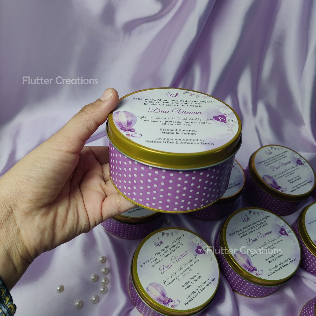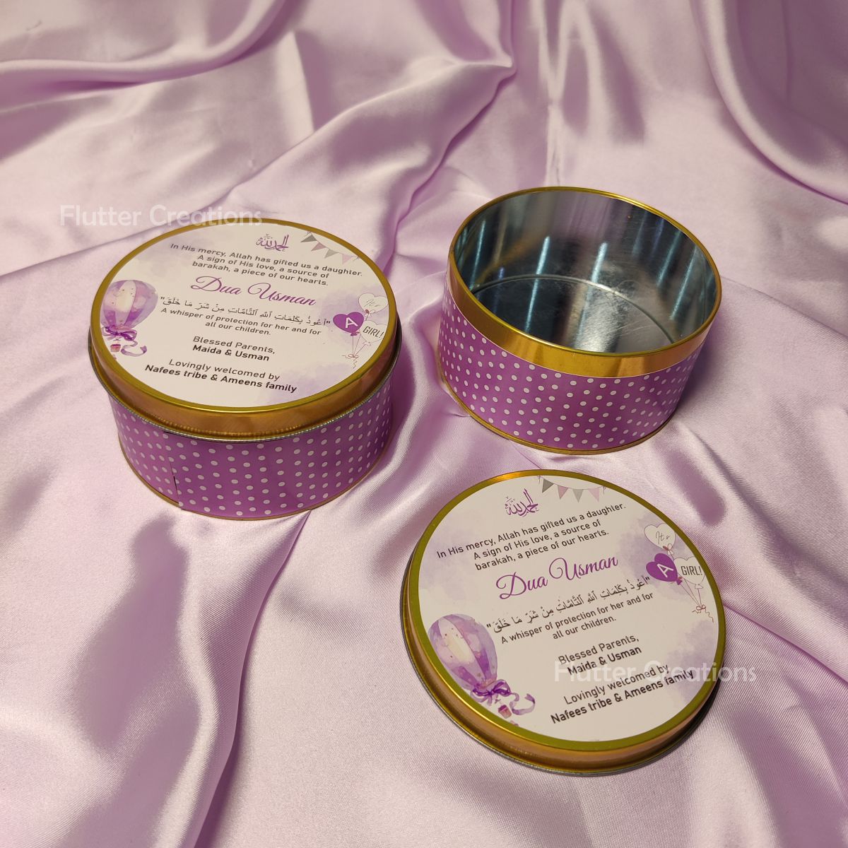 Celebrate the arrival of your baby girl with this elegant Baby Girl Announcement Box. Crafted from high-quality tin metal, it features customized prints on both the top and bottom, offering a refined and durable keepsake. Its polished finish ensures a sophisticated presentation, making it an ideal way to share your joyous news with family and friends.
