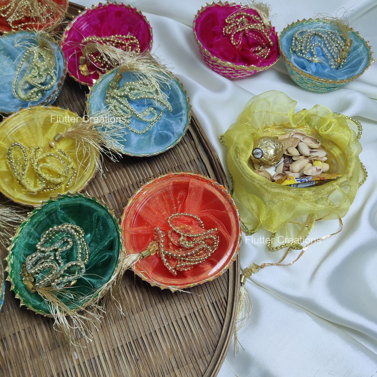 Matka Potli offers an elegant and sophisticated way to present dry fruits and chocolates at weddings or nikkah ceremonies. Crafted with attention to detail, these favor boxes enhance the celebratory atmosphere while providing a tasteful and practical gift for guests.