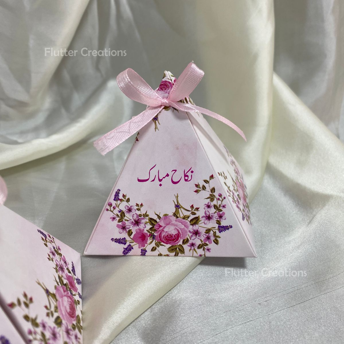 This Pink Pyramid/Triangle Box is a cost-effective option for nikkah bid favor boxes. With its unique pyramid/triangle shape and vibrant pink color, this box adds a touch of elegance to any event. Perfect for budget-conscious customers who want to impress their guests without breaking the bank.
