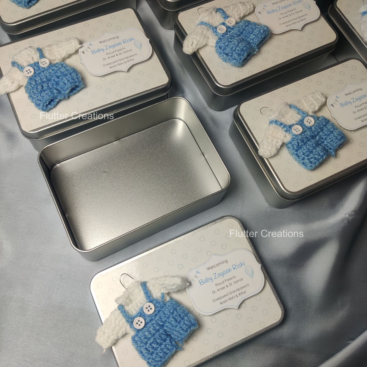 Tin Box with Crochet Design (Imported) - Baby Boy Announcement